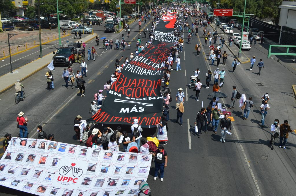 Los contingentes marcharon sobre el Eje Central Lázaro Cárdenas, llegando al paso a desnivel con el Paseo de la Reforma, en ese punto realizaron diversas pintas y detonaciones de petardos en el bajo puente, antes de llegar hacia la zona de Garibaldi.