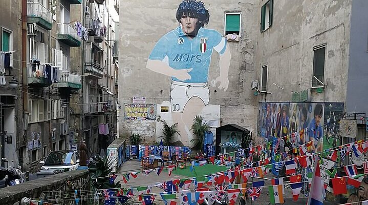 Su paso por el Napoli también dejó huella en la historia del fútbol. Cuando llegó al club italiano en 1984, el equipo estaba al borde del descenso; seis años después, Maradona lo llevó a ganar dos títulos de liga, una Copa de Italia y una Copa de la UEFA. En Nápoles se convirtió en un ídolo absoluto, al punto de que los aficionados lo veneraron como a un santo, con murales, estatuas y hasta un altar con su imagen. El estadio del Napoli lleva hoy su nombre: Estadio Diego Armando Maradona.
