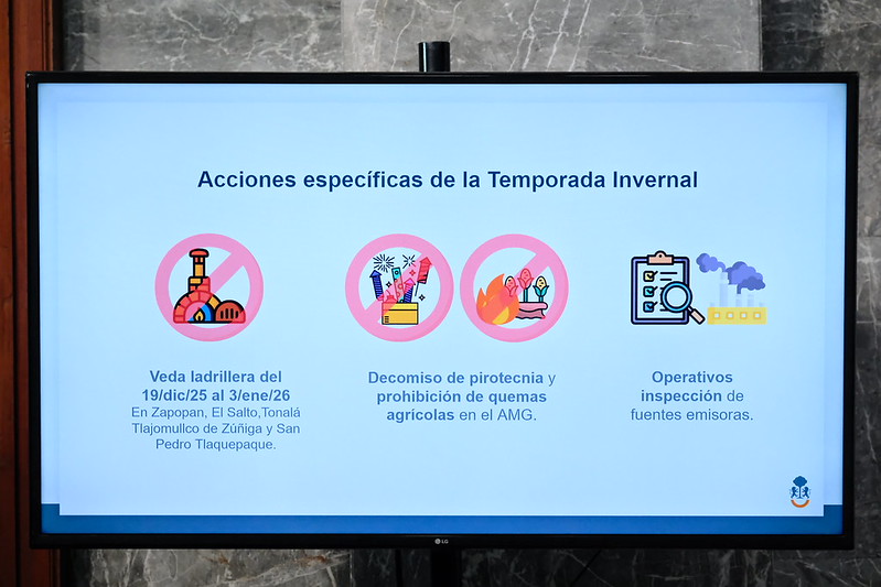 En cuanto al control de emisiones, Iker Frangie Martínez Gallardo, Procurador de PROEPA, informó que durante esta temporada invernal aplicarán diversos operativos de vigilancia y visita a unidades económicas altamente contaminantes, con énfasis en el Sur del Área Metropolitana de Guadalajara.