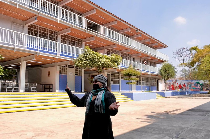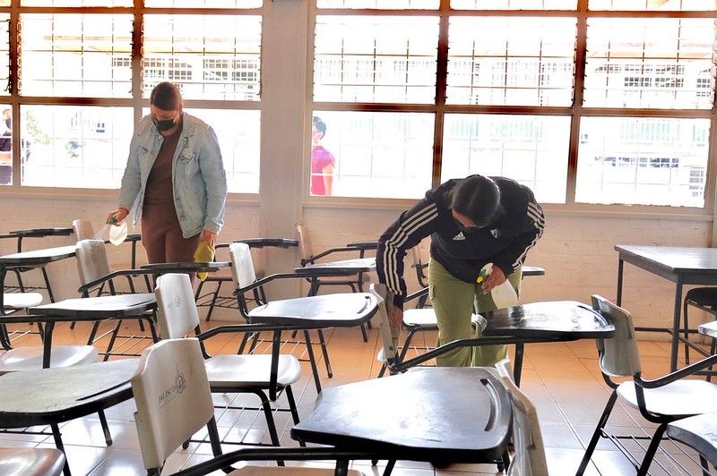 La ventilación de los espacios escolares es de suma importancia, y va de la mano con las labores de limpieza de superficies con agua y cloro que realiza el personal de intendencia del propio plantel, por lo que el uso del cubrebocas reforzará la protección a la salud de alumnas y alumnos.